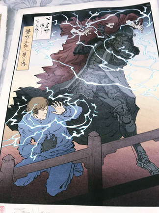 Walking past the stands you at Hyper Japan really brings out the inner magpie. Artwork you know'll spark dinner guest interest when they come across your wall mounted collection of Edo Japan inspired western movie interpretations such as the above. Or the Totoro sculptures & wall mounted samurai masks below. If you're a lucky enough to have a partner who shares your facination with bright & colour commic/animation style artwork then your home is sure to welcome more bespoke and one-off pieces like the illustrations of a one Anna Hollinrake. Hyper Japan brings you face to face with the artists, a perfect opportunity to have your purchase signed and thus transformed into an investment piece should the artist continue to hone their skills over the next decade. These 20 something's may not realise it now, but those who don't give up and stay the course become masters of their trade as their competitors fall off, grow fat and forget their talents.
